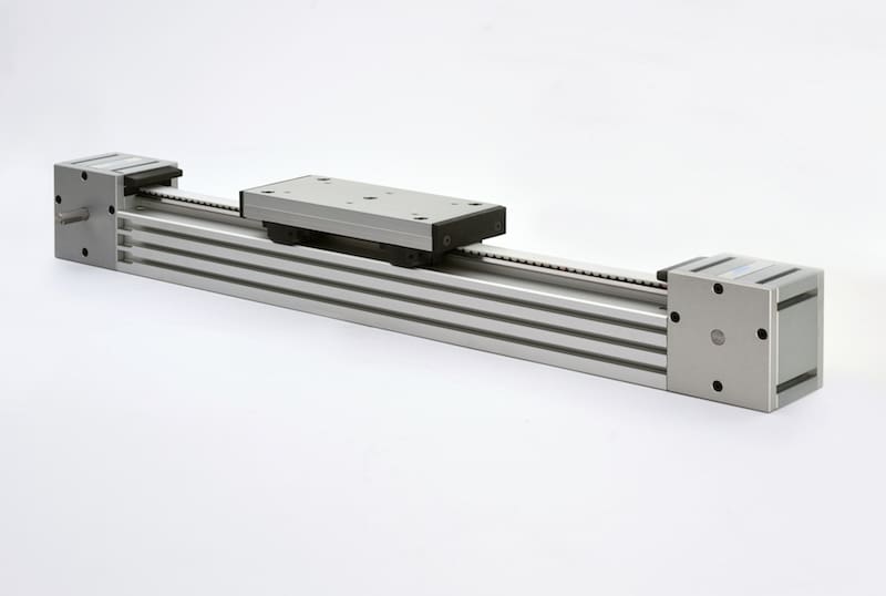 Arranged in parallel and operating with a single motor, the first set of DLS4s are connected to a pusher arm which moves the trays of loaves forward onto a conveyor, into the oven operating at a temperature of over 200°C. Working in close proximity to the oven, the double row bearings are suited to the high temperatures. HepcoMotion also offers Vacuum and Extreme Temperature bearings for either extreme high temperatures or extreme low temperature applications. 32 loaves are moved at a time and baked in the oven for over 20 minutes. The actuators are constantly repeating this process every 30 seconds, 24 hours a day, seven days a week. As a zero backlash system, the DLS4s are able to offer the greater repeatability and accuracy required for this application.