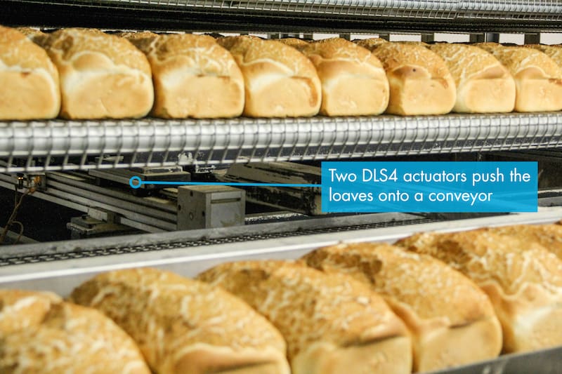 As small, but central parts of an enormous production system, low maintenance is a core requirement of these actuators. If one part of the system goes down, the entire production line is affected. With a high throughput of 420k loaves a week, any unplanned maintenance is going to have a big impact.
