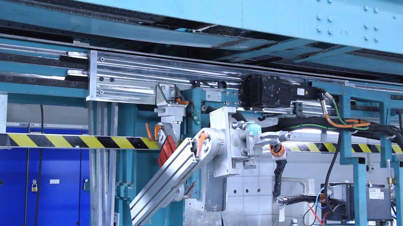 The rails, including carriages and bearings specified by Spie, are from HepcoMotion’s proven GV3 system. Approximately 500m of single-edge slides were used in the new design; the upper slides in each assembly were supplied with a rack to drive the carriages by motorised pinion. Double-row bearings, which are made in a single piece, were used on the carriages. “The one-piece design ensures no dirt can penetrate into the bearings. The V-guide principle also ensures that dirt particles are transferred away from the running surface as the bearings move along the slide,” explains Thorsten Pfau, Sales Manager for HepcoMotion in Germany. “These bearings have high load capacities, especially in the radial direction. In this case, this was of great importance – the mass of the welding robot and carriage is about 220kg.”