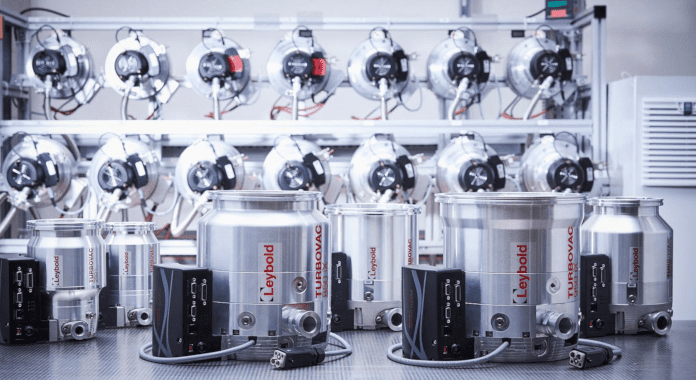 In June 2020 the vacuum specialist Leybold has expanded its TURBOVAC i/iX series – 90, 250, 350 and 450 – by the sizes 850 i/iX and 950 i/iX to six models. The two new turbomolecular pump variants are characterized by extended, trouble-free operation, longer system life and lower operating costs. They are used in many applications from research and development and analytics to industrial. In other words, especially where a clean and stable high- and ultra-high vacuum is required – such as in coating, heat treatment, analysis, thin-film research and helium recovery.