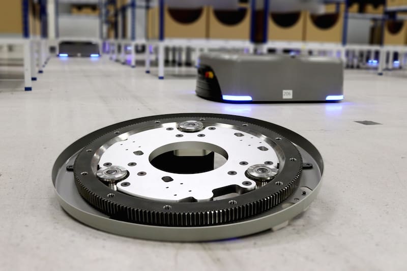 At the centre of the system (quite literally!) is Hepco’s heavy duty ring guide. The HD ring is used on the turntable of the robot to rotate the robot in different directions. Specified to handle millions of rotations in its lifetime and the ability to work with axial loads up to 700kg, the ring also has to manage radial and moment loads in order to accelerate and decelerate a top-heavy rack. A slewing ring could not be used as an open centre was needed to enable a camera to read a barcode placed on the underside of the payloads. Having worked together before, HepcoMotion was the first choice for Eiratech. A custom HepcoMotion HD ring was used, with a bespoke outer gear. Maximising efficiency and improving accuracy, Eiratech offers an enticing automated solution for warehouses.
