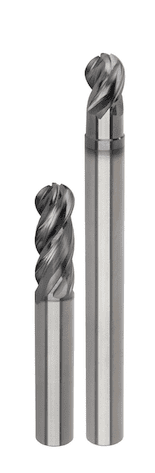 The HARVI I TE ball nose end mill is available in two different lengths: regular (inch non-necked, metric with neck) and long.
