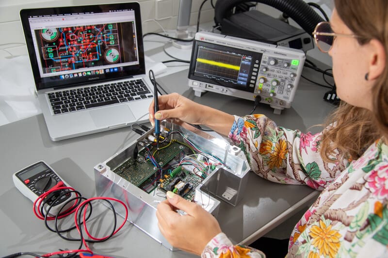 accuracy that has hitherto been technically impossible. Here an employee of Q.ANT is testing electronic signal processing.