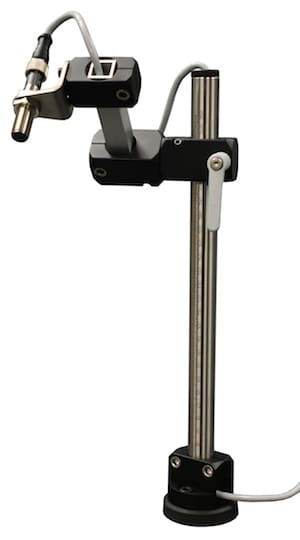 Pre-designed systems for mounting sensors are available in three base options: adjustable, 90 degree, and flanged bolt. All three systems have sensor mounting brackets that can accommodate round or tubular sensors with an 8, 12, 18, or 30 mm diameter. Alternatively, users can select a plain bracket with no pre-cut hole to add their own custom sensor hole. Plain brackets can also be used as reflectors in optical sensing applications or to mount screens. The adjustable system features an adjustable connector that allows the user to rotate the sensor 360 degrees along the X or Y axis depending on how the system is installed until the correct position is reached. The 90 degree system features two tubes fixed at a 90 degree angle. While it contains more components, this design allows users to easily adjust the length and height of the system at a reduced cost when compared to the adjustable system if rotational adjustability is not desired. The flanged bolt base is also a two-way system fixed at 90 degrees, however it only has one tube. The compact and simplified design is ideal for systems that only require the sensor connector to be repositioned in one plane (vertical or horizontal) along the tube.