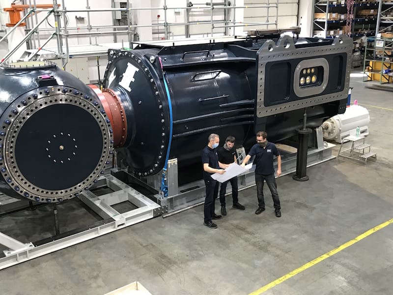 About 15 meters below the O2’s 72m-long superstructure, are two fully integrated drive trains from SKF on two wing-like legs. Here the two double-bladed rotors turn, each with a diameter of 20 metres, the largest ever on a single generating platform to date, driven by the ocean current. The electricity generated in the generators is conducted ashore via a submarine cable, where it can be fed directly into the grid, stored or processed into “green hydrogen”.