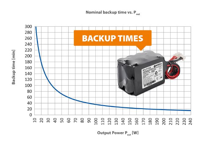 The intrinsically safe LiFePO4 energy storage device is available in two versions: Compact and shrunk for flexible system integration as BP-LFP-2725 and in a robust aluminum housing for DIN rail mounting as BP-LFP-2725D. In combination with the matching DC UPS units UPSI-2412 or UPSI-2412D, modular and powerful 24V emergency power supply solutions can be implemented (Backup times: ~70min@50W load / ~33min@100W load / ~18min@240W load).