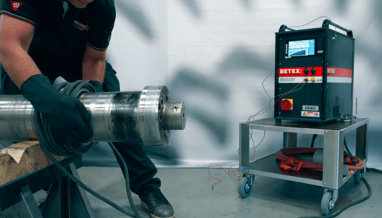 Betex MF Quick-Heaters consist of a generator used in combination with a fixed or flexible inductor. Fixed inductors are suitable for serial mounting or dismounting of labyrinth seals, bearings etc. Flexible inductors come in various lengths and diameters and can be placed around and/or in a part. Shape or size are virtually unlimited. Technicians are pleasantly surprised when they experience how easily they can work with these devices and how quickly they can move them into position where they need to do the job. A recent project involved a manufacturer of pellet presses. For maintenance work, they have to remove inner rings from a crank shaft. Normally they would grind them off. At the customer’s request we ran some tests with a BETEX MF Quick-Heater 22 kW, with a flexible inductor. Within 1 minute, the inner ring was heated to 150°C and could be pushed off the shaft without any extra force. The customer was so pleased that they sent us other parts to test, all of which were carried out successfully. The time savings were amazing! The heater had proved its versatility so the decision to purchase it was quickly made. The dirty and noisy work of grinding off the rings is now history, much to the delight of the workers who were responsible for doing this. Also, collateral damage to the shafts is now a thing of the past.