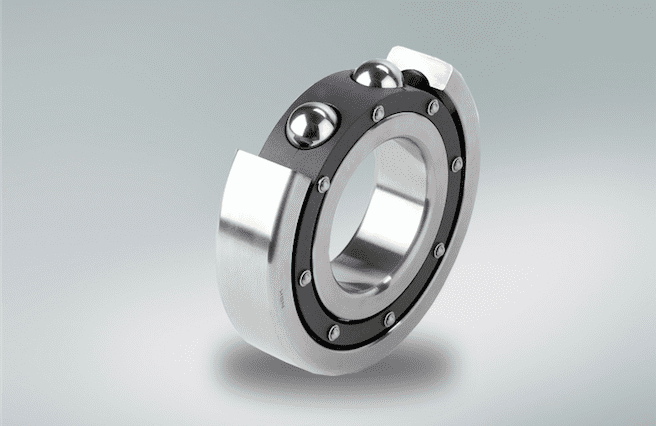 A stable cage that occupies the entire inner volume of the bearing provides guidance for the rolling elements (also made of stainless steel), while the cage material, a self-lubricating fluoroplastic, ensures low-friction running of the bearing without external lubrication. In addition, the high-performance fluoroplastic is extremely wear-resistant and offers good low-temperature properties at speeds up to 3600 rpm. The cage is of two-piece design, with the two halves joined by stainless steel rivets. In laboratory tests, and in practice, these deep groove ball bearings achieve significantly longer service life than other bearings for this application, such as those with a cage made from hard phenolic resin.
