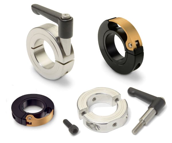 - Quick clamping shaft collars require no tools for installation, adjustment or removal