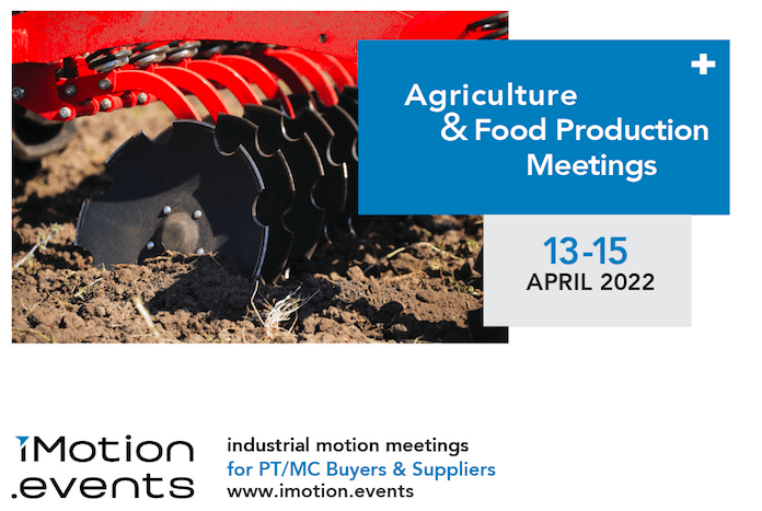 As agriculture and food manufacturing intersects every corner of the globe, buyer and supplier connections are an integral part of the future. To help meet the spike in recent demand and promote healthy growth, iMotion Events is organizing the Agriculture & Food Production matchmaking meetings. On April 13-15, Power Transmission and Motion Control professionals will connect globally, through a carefully designed hybrid event structure that aims to maximize both online and in person matchmaking opportunities.