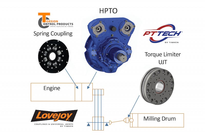 Spring couplings from Torsion Control Products (TCP) are ideal for use in construction machines powered by modern diesel engines. Thanks to their special torsional elasticity, these durable, robust couplings damp the vibration from the powertrain and remain serviceable even under the harshest operating conditions. Torsion Control Products is part of the US manufacturing corporation The Timken Company. Within the organisation of roller bearings specialist Timken, a division was created for further powertrain components, including the Torsion Control Products brand couplings as well as couplings and components from PT Tech und Lovejoy. These are now presented here for use in the powertrains of mobile construction and process machines.