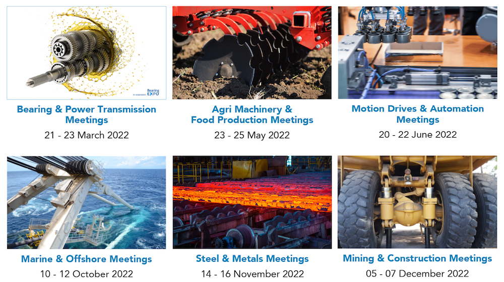 The first event will be the Bearing & Power Transmission Meetings starting on 21 March, followed by five more events during 2022, where the attendees will have the same options to meet and connect with the PT/MC community and procurement professionals from the Agriculture, Mining, Food & Beverage, Manufacturing, Marine & Offshore and Steel industries.