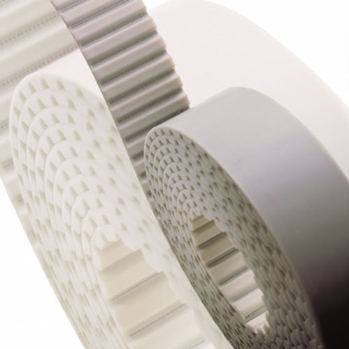Megalinear open end timing belts are made of thermoplastic polyurethane for superior wear and abrasion resistance. A wide range of different cords (zinc-coated steel, Kevlar, stainless steel, High Performance, High Flexibility) offer exceptional operational characteristics, even under high tractive loads. Normally used in linear motion drives, Megalinear belts can be supplied as open end rolls or as endless jointed belts; they are particularly well suited where positioning accuracy, dimensional stiffness, high linear speed,  low noise generation and long maintenance-free cycles are key requirements.
