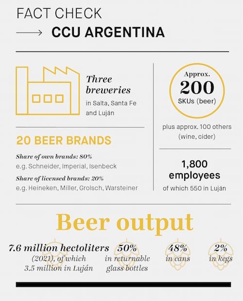Thirdly and finally, the decision made in 2016 to start filling beer into cans on a large scale proved to have the biggest impact on the company’s sales development. With a mere 5% share of the total Argentinian market, at that time beer in aluminum containers was something of a rarity. In view of the high logistics costs for transport and sorting – particularly for the returnable glass bottles used up until then – CCU nevertheless wanted to make this bold move.