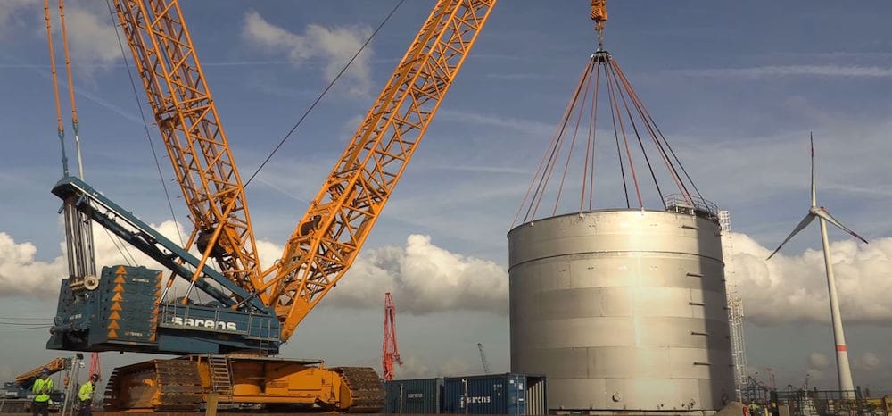 Sarens, world leader in heavy lifting, engineering transport and a reference in crane leasing services, has been directly involved in the expansion work being carried out at Evonik’s chemical plant in Antwerp, by transporting and contributing to the installation of a new storage tank for chemical materials, with a capacity of approximately 5,000 cubic metres.