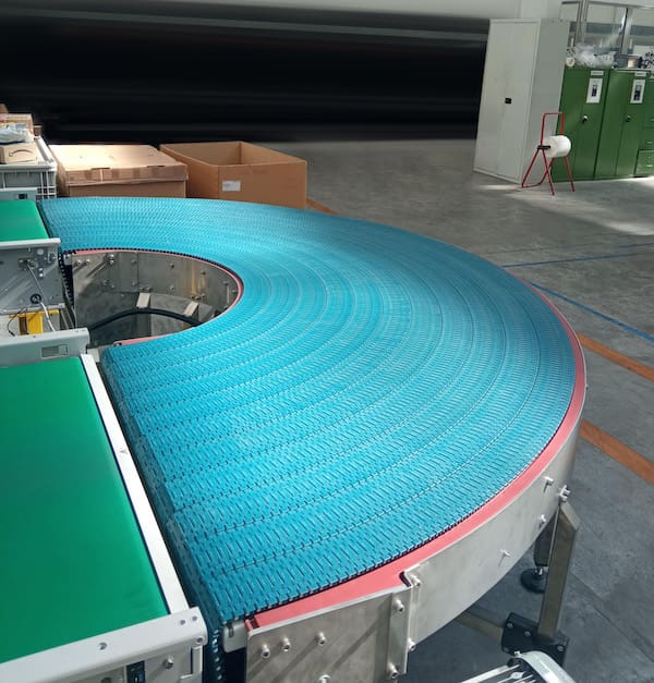 The new Rexnord Curve System enables head-to-tail transfer of even small and light cases without the need for micro pitch conveyors, transfer modules or plates. A consistent small nose radius across the width of the conveyor and smallest transfer available in the industry result in a safe small gap between the Curve System and the adjacent conveyor. This eliminates the need for roller transfer bars while providing more flexibility in container types when changing lines. Consistent angular speeds of the system’s modular belts ensure that products travel through the curve without rotation.