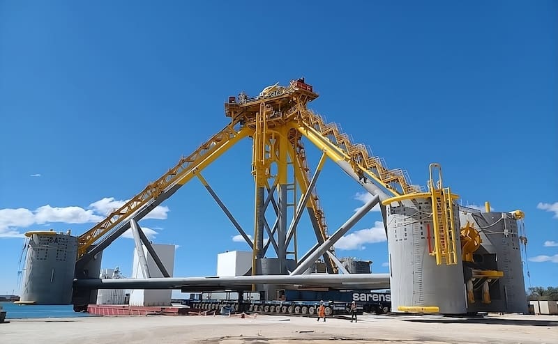 Sarens’ team was responsible for lifting and assembling the central buoys of the three structures, in addition to the three central columns, the three transition pieces, the 18 lateral buoys, the 9 side nodes, as well as the anchorages of each of the pieces.