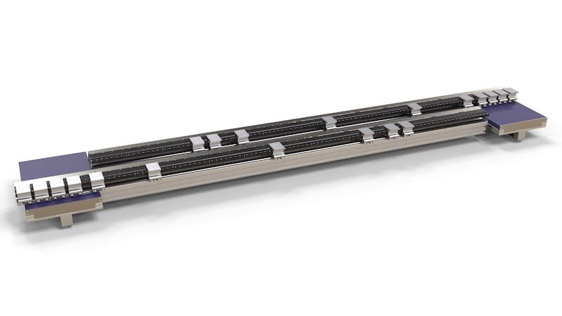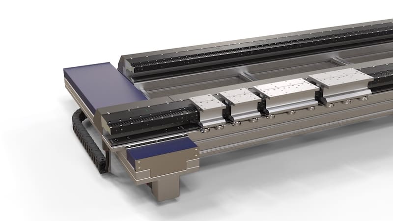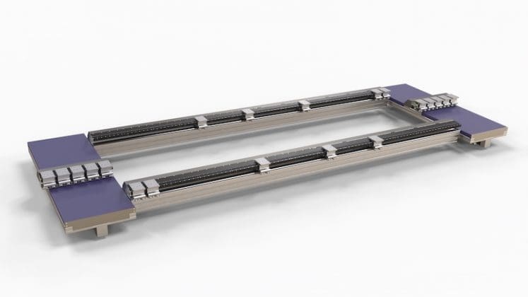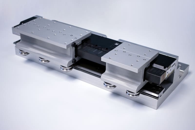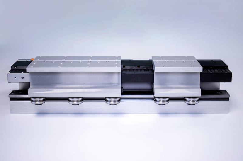 The absence of curved motor sections allows movers to be stronger, more powerful and with a larger mounting platform, while maintaining accuracy, durability, and agility.  Mover speeds of 4m/s, payloads up to 40kg and press loads up to 1500N are possible. Additionally, movers with longer magnet arrays also reduce heating losses by up to 60%.  GFX-r is available in both 4 & 6 bearing versions for increased strength and stability.
