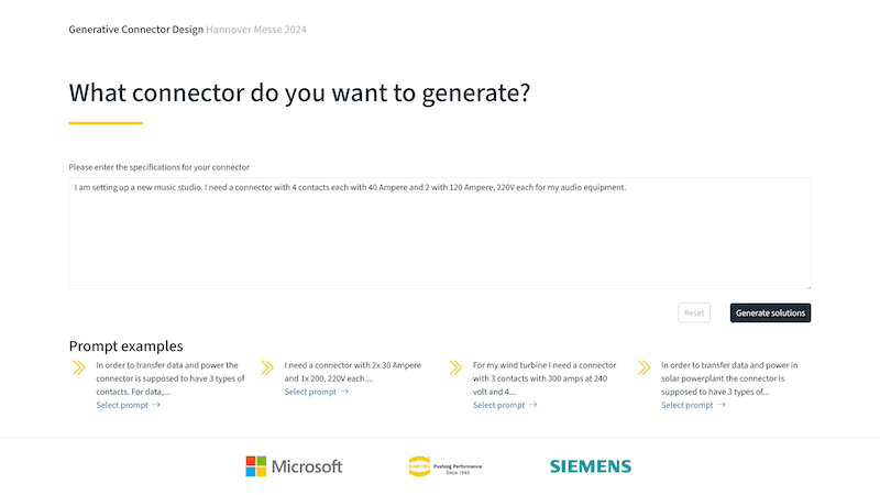 At the same time, HARTING is showingcasing the AI-assisted development of connectors. Together with partners Microsoft and Siemens, the Technology Group is demonstrating how Artificial Intelligence is able to revolutionize the application-based development of industrial products: Natural language inputs are interpreted by highly sophisticated Microsoft recognition algorithms and contextual understanding in order to adapt AI products to specific requirements with the aid of HARTING connectors and create 3D models for CAD software (Siemens). This speeds up development processes, facilitating connectivity solutions ideally adapted to the applications, while ensuring the most sparing deployment of resources.