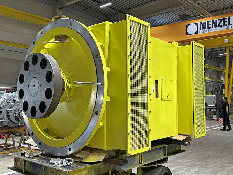 The German manufacturer Menzel has a more flexible offer and is set up to provide all electrical and mechanical modifications to suit the individual application requirements. Menzel configured a three-phase squirrel cage motor in size 630 for the cooling tower pump of a CHP plant in Cologne, equipping it for vertical flange mounting and implementing protection class IP23 and cooling type IC 01 (open-circuit ventilation). The design boasts high power density, a low weight and low purchase and operating costs. The MEBKSD-type squirrel cage motor features 1650 kW rated power, 6000 V rated voltage and a rated torque of 31897 Nm.
