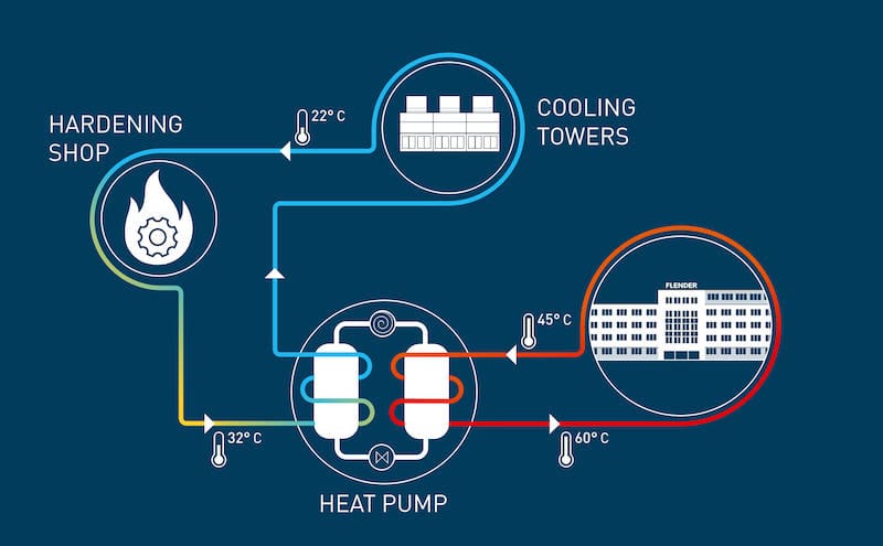 The impact is substantial. Flender now heats most of its halls and buildings in Bocholt using energy from the hardening process rather than conventional gas heating, saving nearly 2.4 million kilowatt hours of natural gas annually and reducing CO2 emissions by 400 tons.