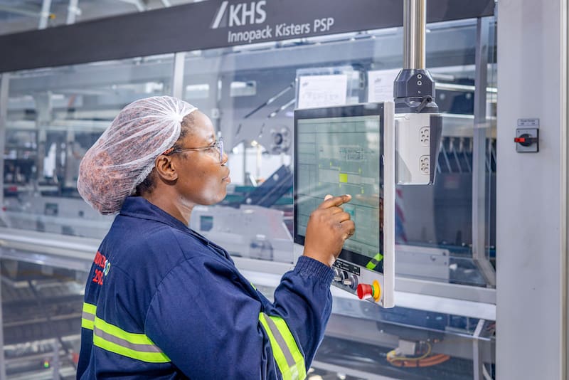 Gwanetsa illustrates the positive development brought about by modernization with further figures. “We’ve managed to cut our overall costs by about 80% compared to the former setup, with a 10% reduction in personnel requirements making a positive contribution to this.” Regarding resource savings, the new KHS plant engineering also scores with an up to 30% decrease in energy consumption, savings in water and CO2 and similarly reduced labeling costs. “Together with the entire group, we’re adopting an ambitious sustainability strategy with a directly noticeable cut in greenhouse gas emissions and also aiming for climate neutrality. Our state-of-the-art KHS technology is helping us to successfully pursue this objective.”
