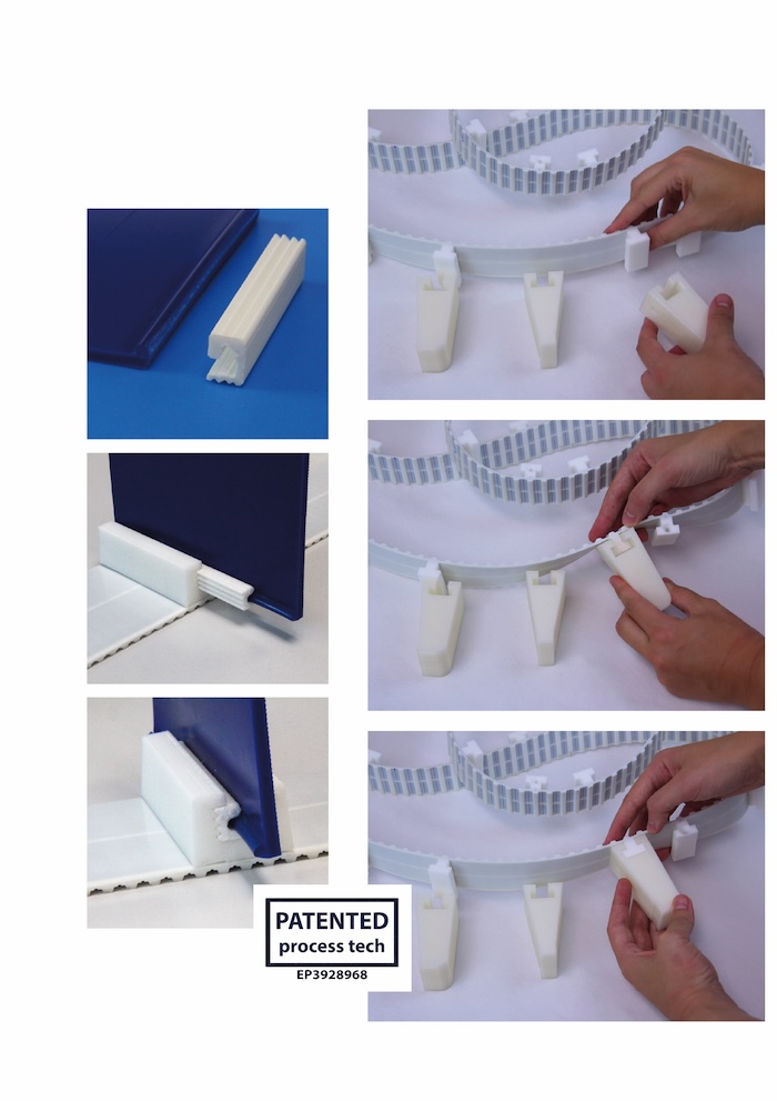 Ydins belts have been designed to suit various industrial applications. Its novelty in the design of interchangeable custom cleats allows the same belt to be used in different processes by simply changing the cleats, providing unprecedented flexibility in variable production environments.