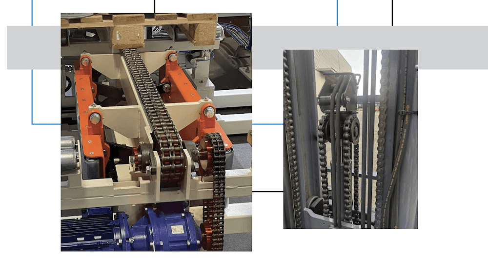 Thanks to their robust structure, the HI-PWR-S chains excel in environments with large shock loads, frequent start/stops, and high-speed operations. These include civil engineering machinery such as skid steers, trenchers, trucks, cranes, agitating trucks, forklifts, and drive units for conveyors, elevators, and stackers.