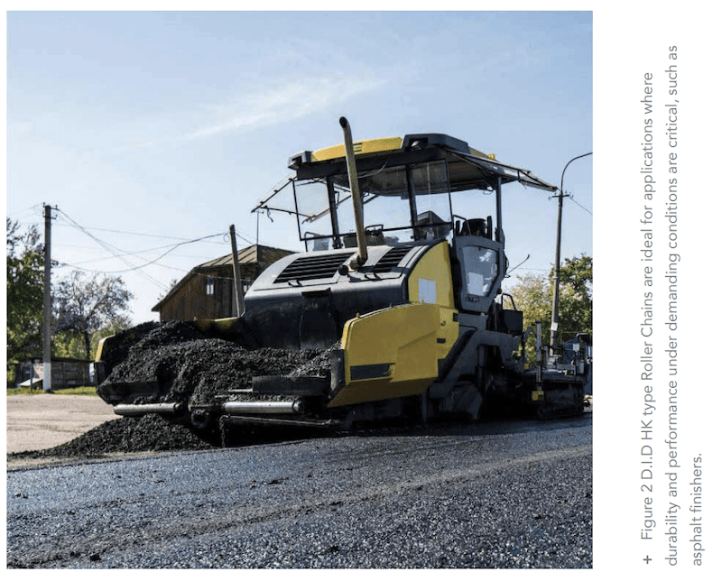 HK type roller chains are optimal for applications requiring higher strength, where the use of larger and heavier chains would be impractical. A prime example of such applications is asphalt finishers, where the need for enhanced durability and performance under demanding conditions is critical.